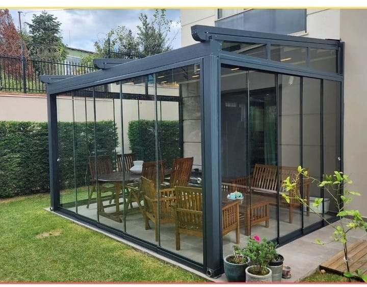 Teras gibi açık alanların camla çevrilerek hem korunaklı hem de estetik hale getirilmesi mümkündür.